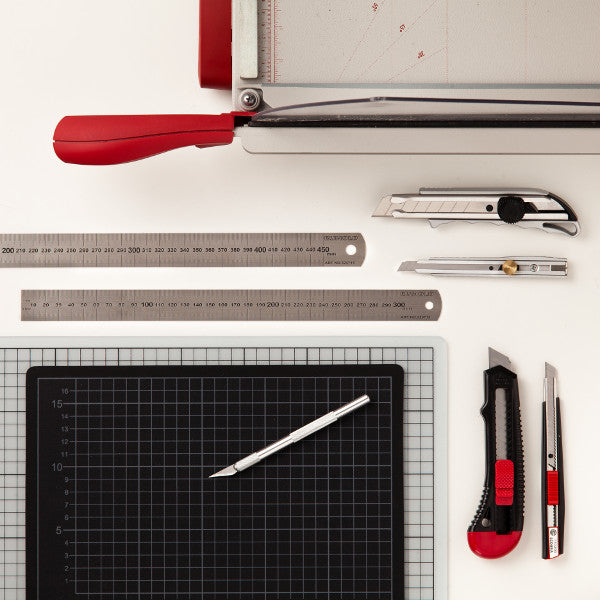 Nützliches Schneidhilfen wie Cuttermesser, Schneidematten und Lineale von Markenherstellern wie ECOBRA, IDEAL...