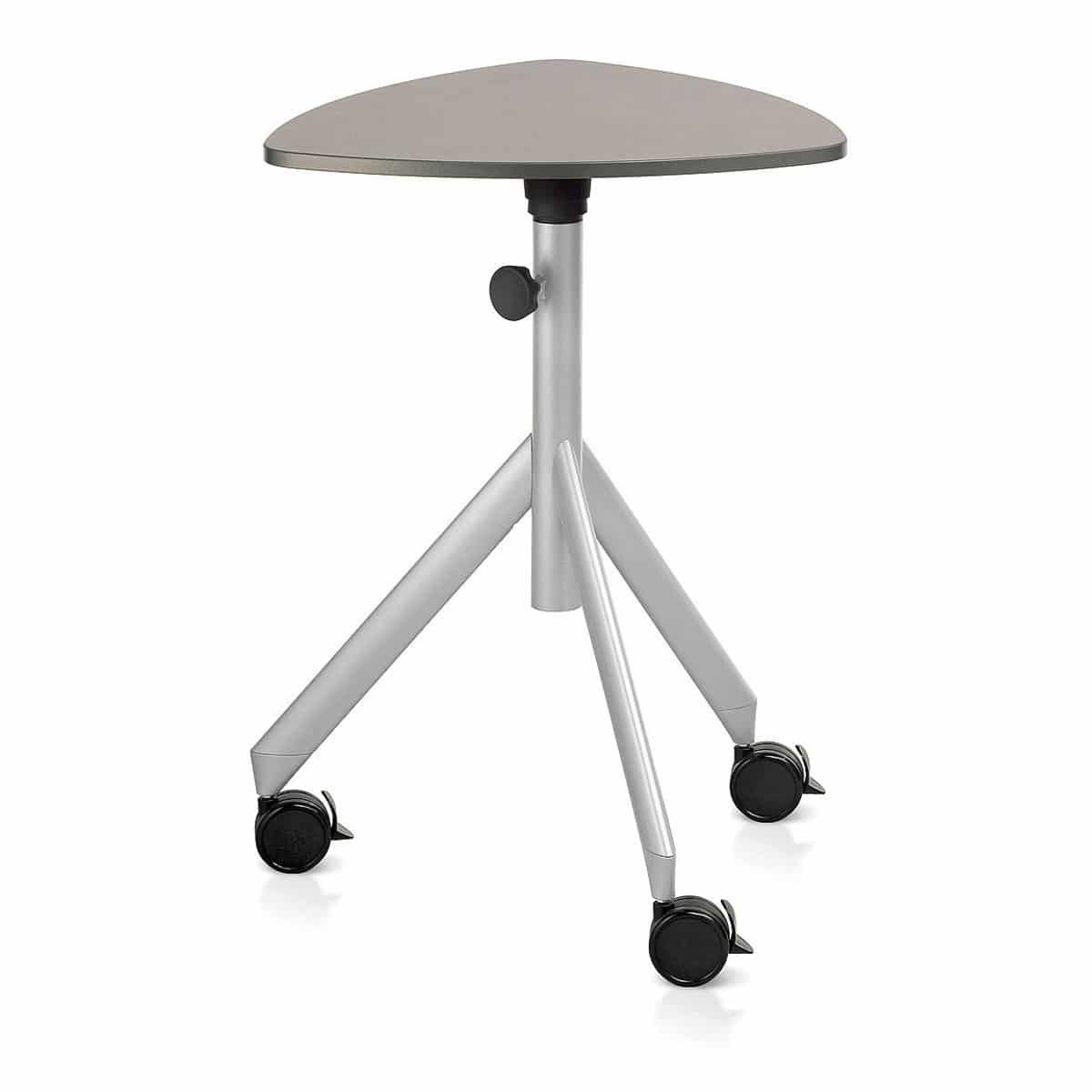 Der fahr- und höhenverstellbare Interaktionstisch hat eine kommunikationsfreundlich geformte Arbeitsplatte. Holz-Ausführung: Pfleiderer 19 mm Str.MP: U506 anthrazit metallic ABS-Kante 2 mm - U506 anthrazit metallic Metall-Ausführung: Gestell, RAL 9007 Graualuminium Maße: B 60 x T 58 x H 75 - 102 cm Platte: B 60 x T 58 cm
