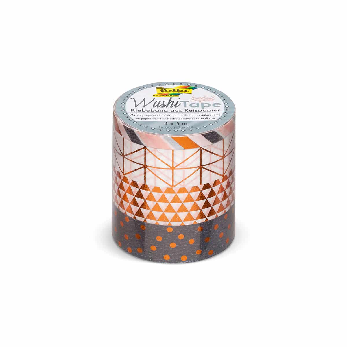 Washi Tape ist selbstklebendes Reispapier, das ganz einfach wieder abgezogen werden kann, ohne Rückstände zu hinterlassen. 4er Set: 3 x 15 mm + 1 x 5 mm breit, 10 m lang Washi Tape kommt ursprünglich aus Japan. Doch der Trend hat sich nicht ohne Grund auch hierzulande durchgesetzt. Die hübschen Tapes eignen sich für jedes Format. Unser Washi Tape gibt es in fünf Sets mit verschiedenen Farben und Mustern: das 10er Set Hotfoil und die 4er Sets Vintage, Geometrisch, Hygge und Hotfoil Kupfer. Sie eignen sich hervorragend zum Dekorieren und Verzieren von Bullet Journal, Grußkarten oder Geschenken. Doch auch auf dem FlipChart sind sie der Hit: Heben Sie bestimmte Elemente hervor oder rahmen das FlipChart ein – einfach und schön. Natürlich sind Ihrer Fantasie keine Grenzen gesetzt. Lassen Sie Ihrer Kreativität freien Lauf und kreieren Sie tolle DIYs als Deko für Zuhause oder zum Verschenken.